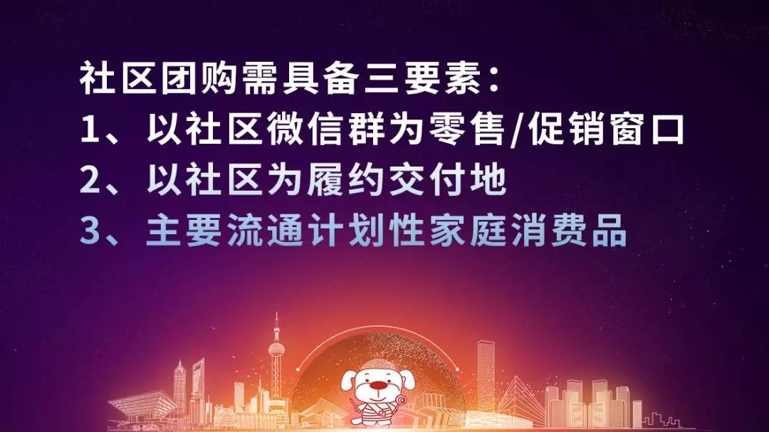 订单兔连总为我们讲述到社区团购是以微信为主要零售渠道,以落地配为主要物流方式,以家庭消费类的计划性商品为主流的一种购物场景。不难看出,社区团购需具备三要素,即: